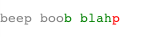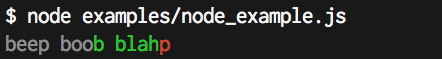To render this information visually, we can color code these text chunks. In Node, there's a module colors which makes outputing colors to the terminal easy.